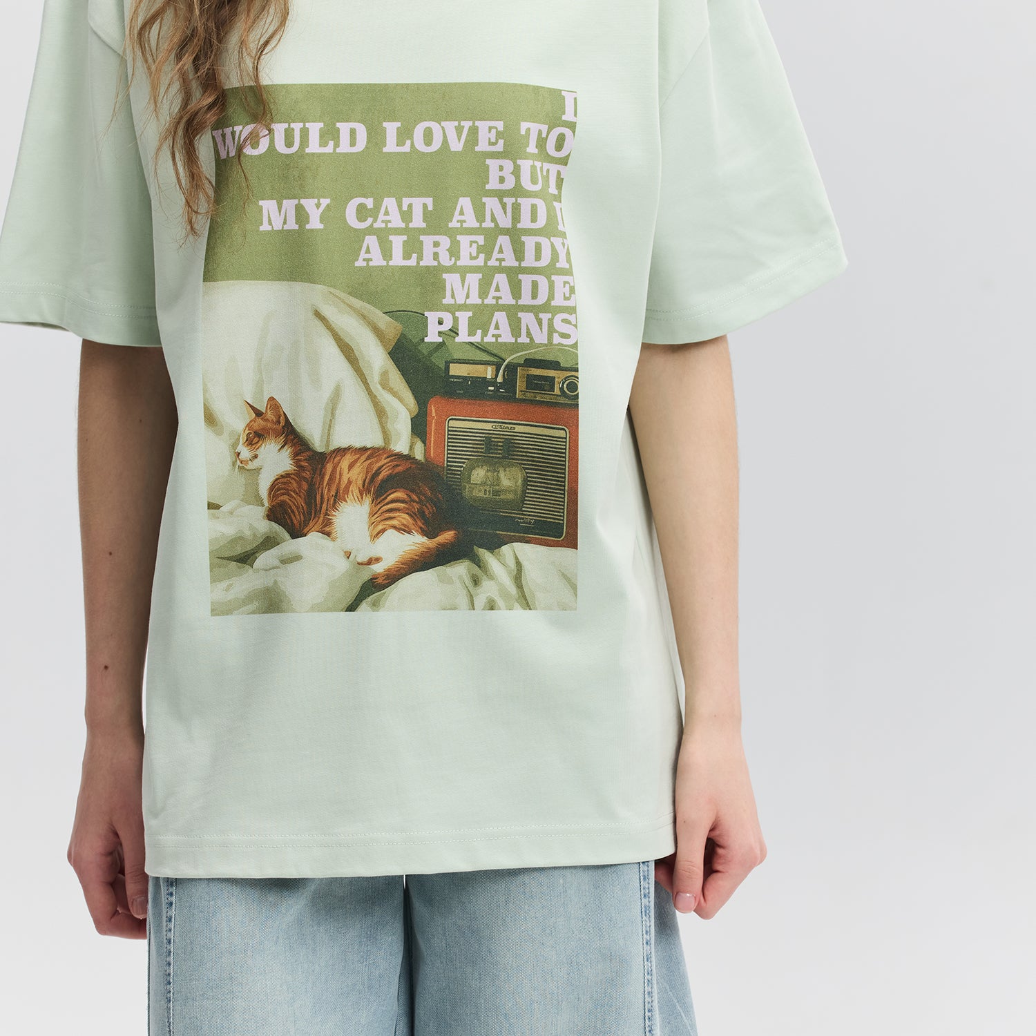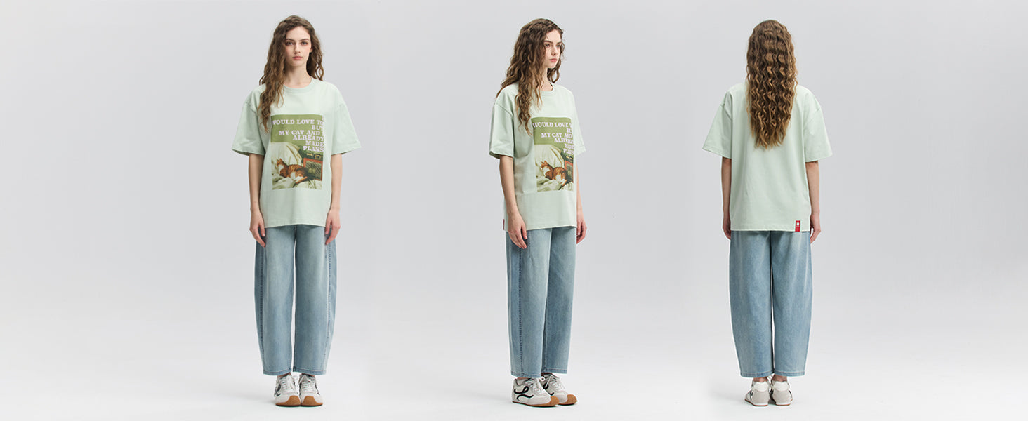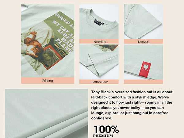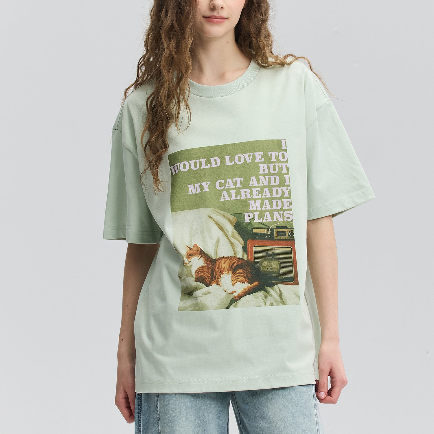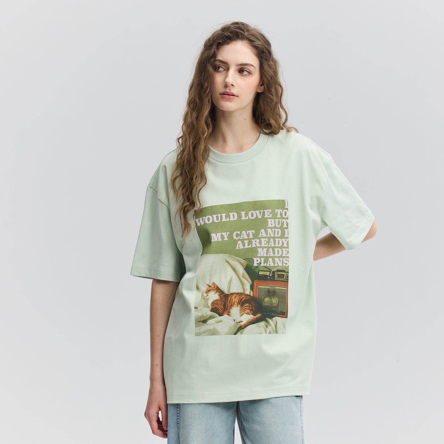 Each T shirt has a story behind, reminding us to live carefree, curious, and content, just like a cat.