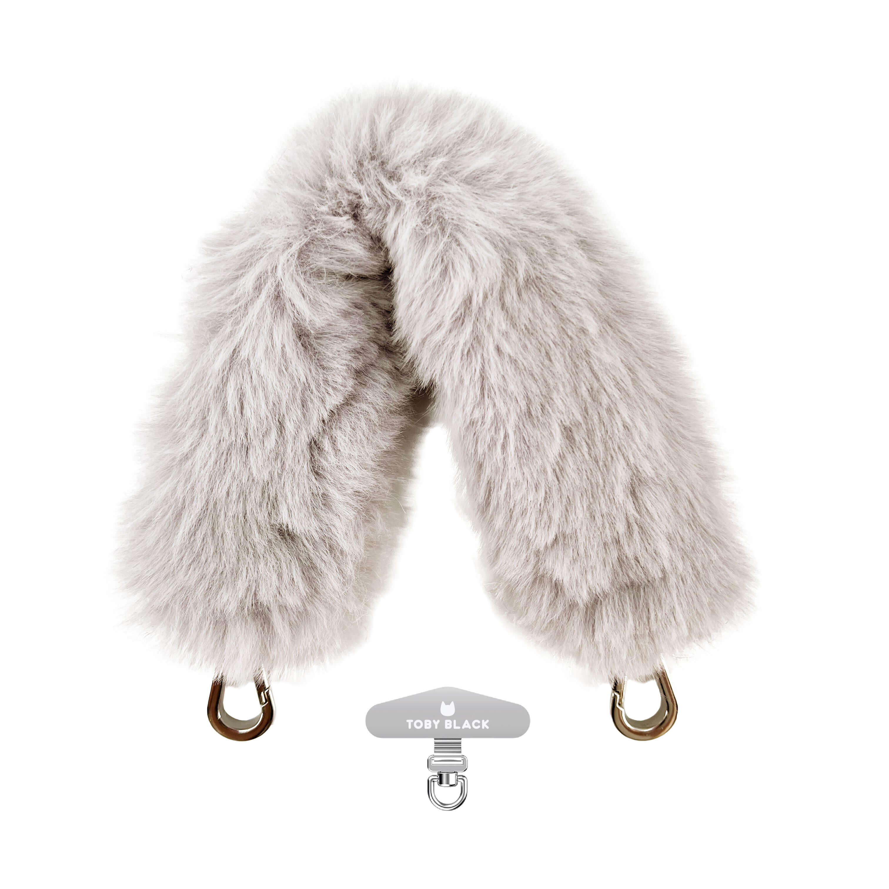 Beige Fur Bag Strap/Wrist Strap with Phone Strap Adapter