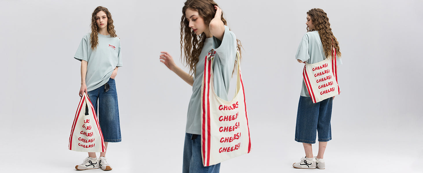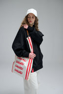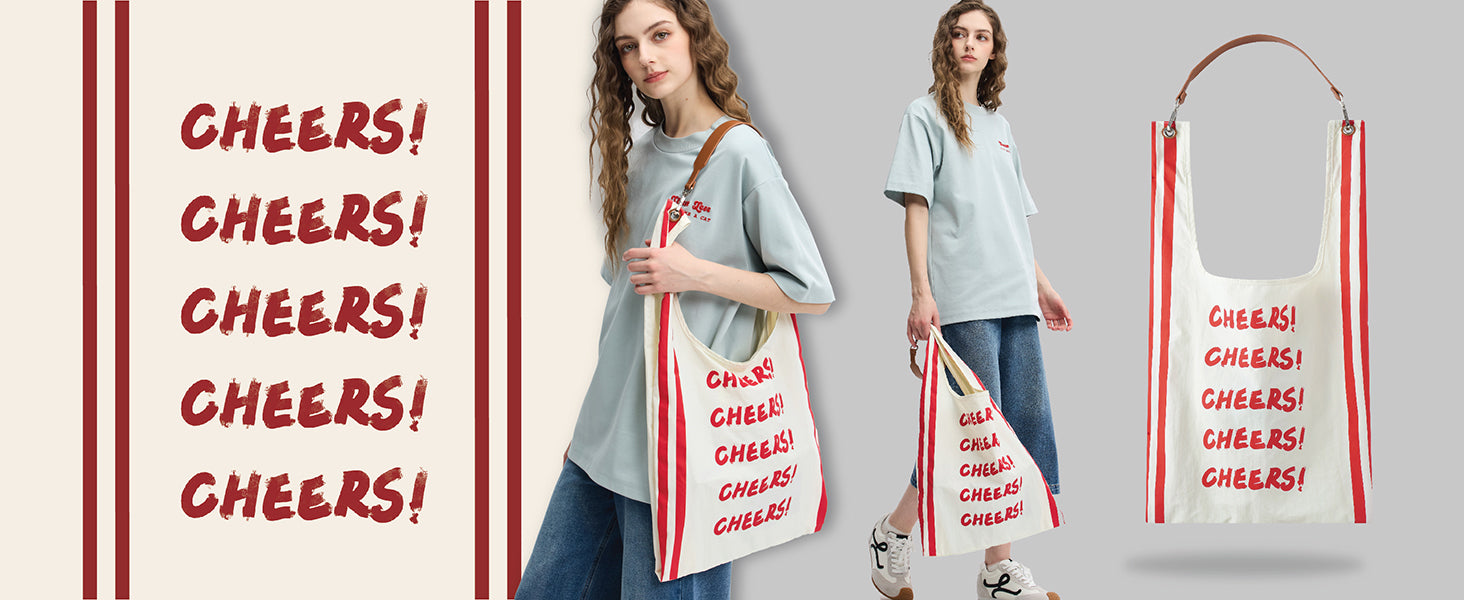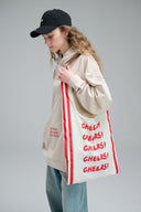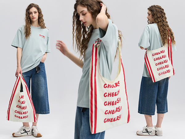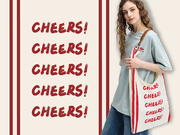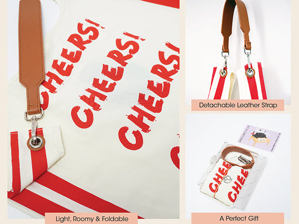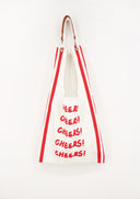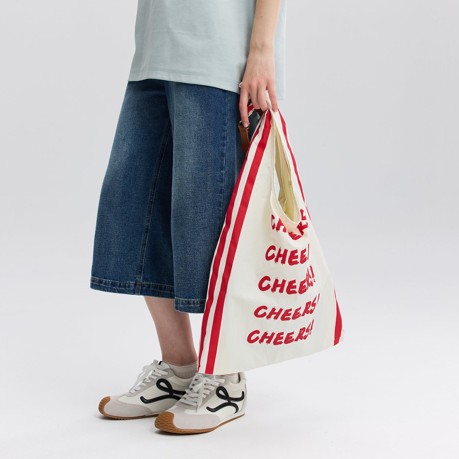 Raise a toast to everyday moments with the Cheers Toby Bag! Featuring bold red stripes and playful “CHEERS!” typography, this stylish and spacious bag is designed for those who love celebrating life. Made from lightweight, durable nylon, it’s perfect for shopping, work, travel, or a spontaneous night out. The detachable strap allows for versatile styling, making it a functional yet fashionable statement piece. Whether you're grabbing coffee or heading to a party, this bag reminds you to celebrate the little things—because every day is worth toasting!