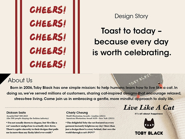 Each Toby Bag has a story behind, reminding us to live carefree, curious, and content, just like a cat.