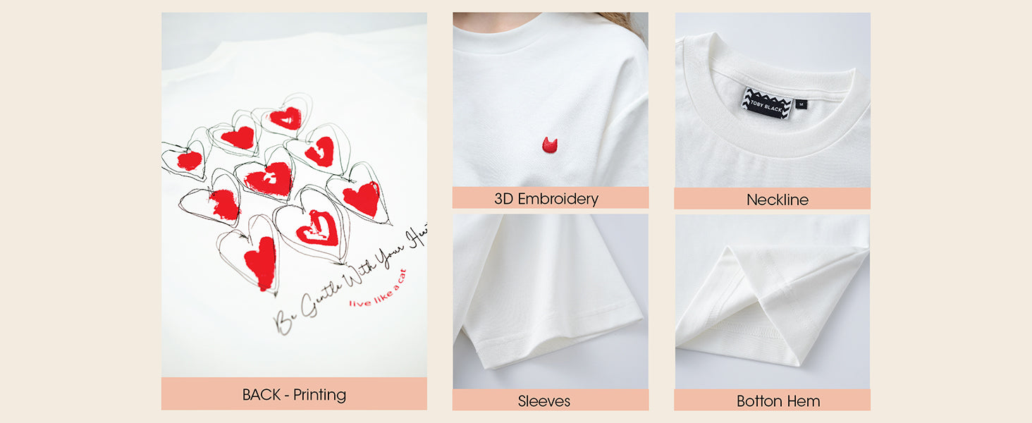 Each T shirt has a story behind, reminding us to live carefree, curious, and content, just like a cat.