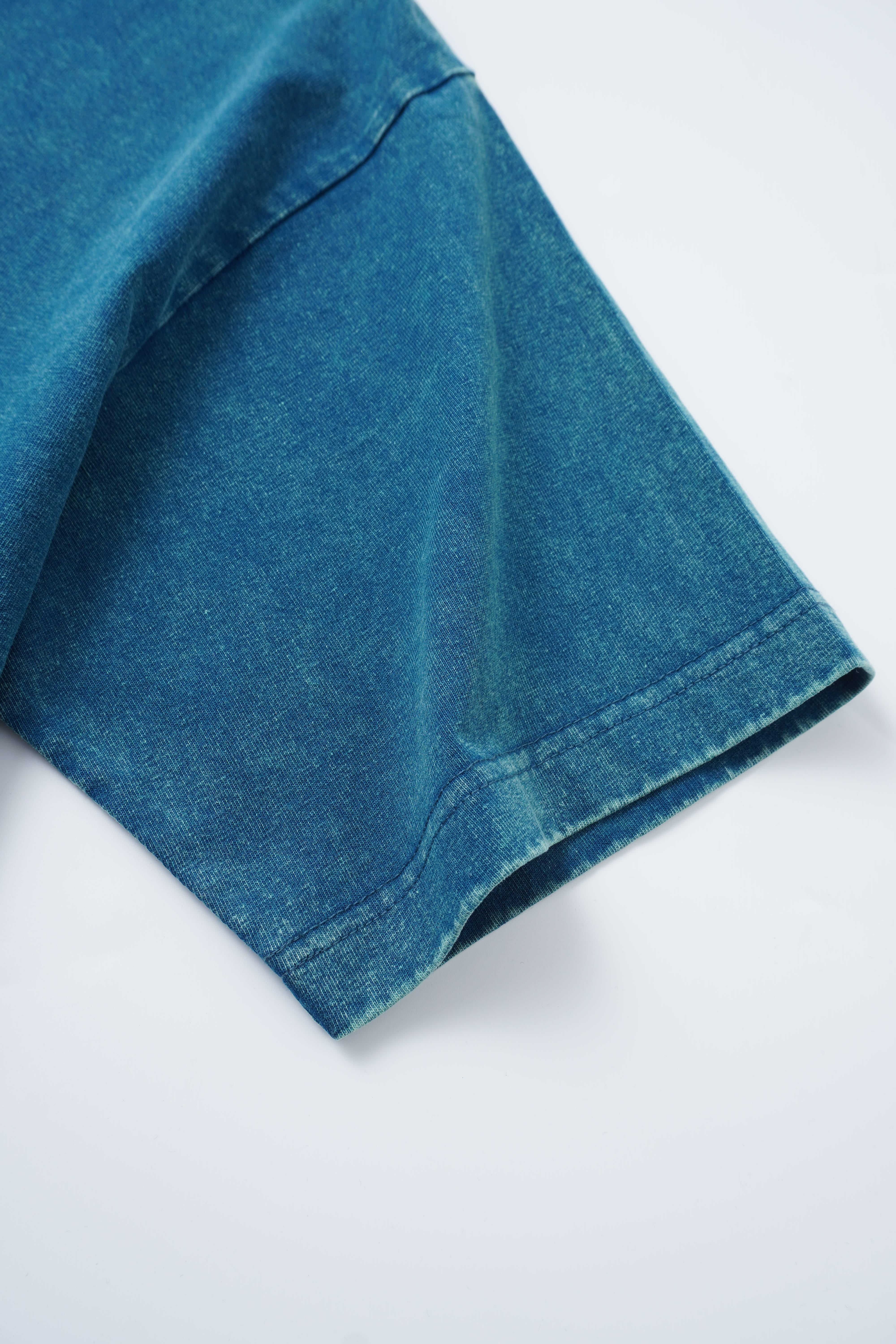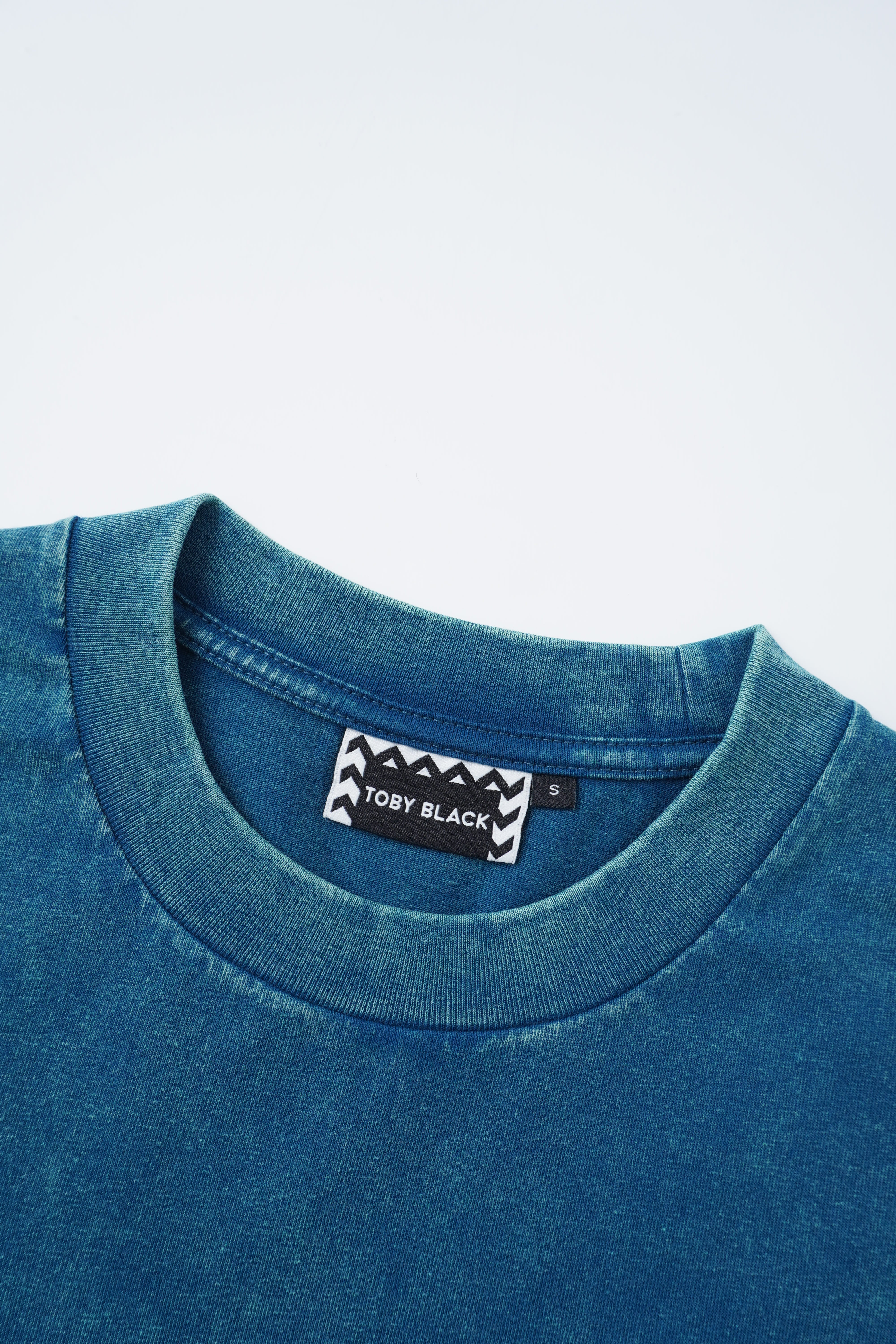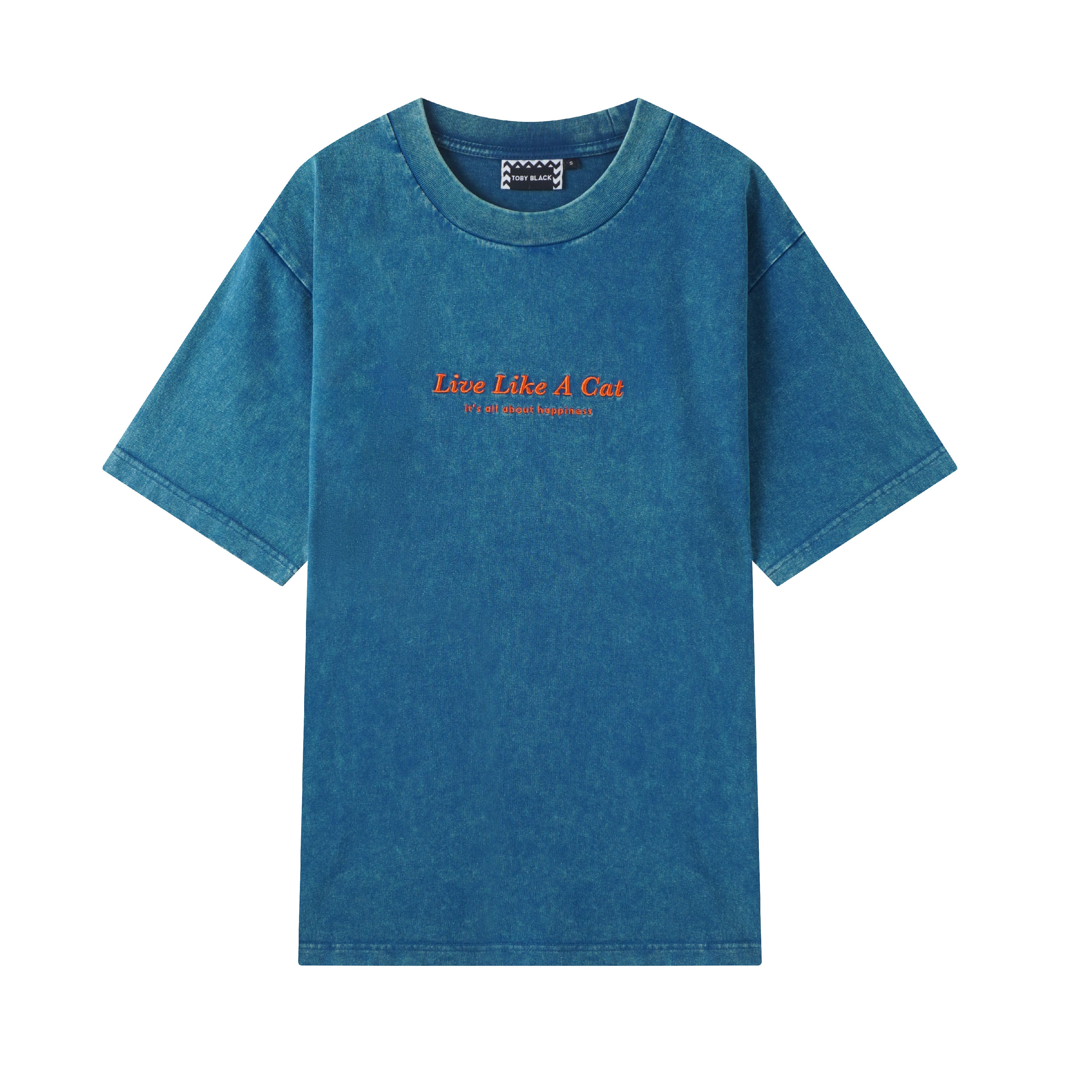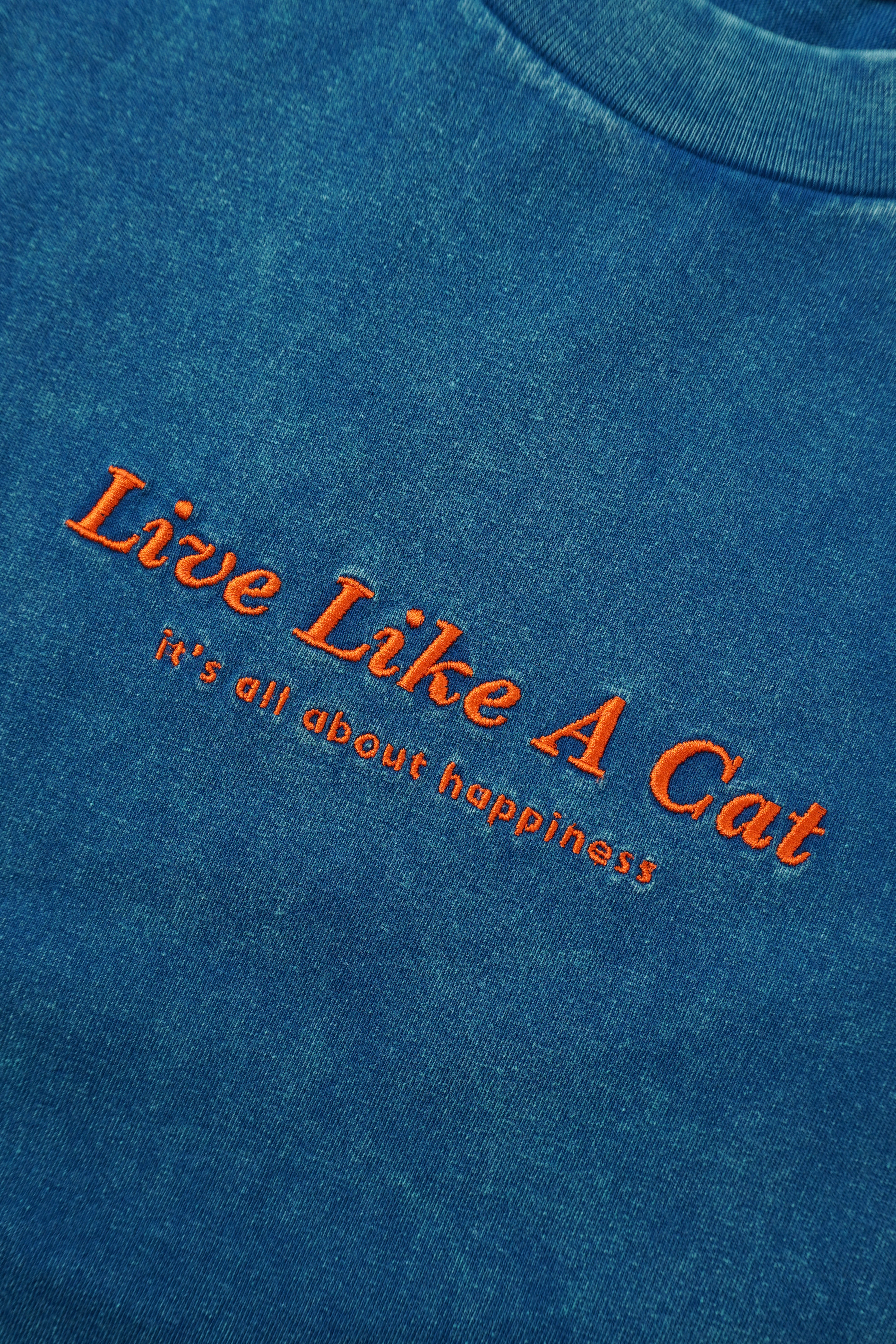 "Live Like A Cat" Unisex Classic Fit T shirt Vintage Washed BLUE