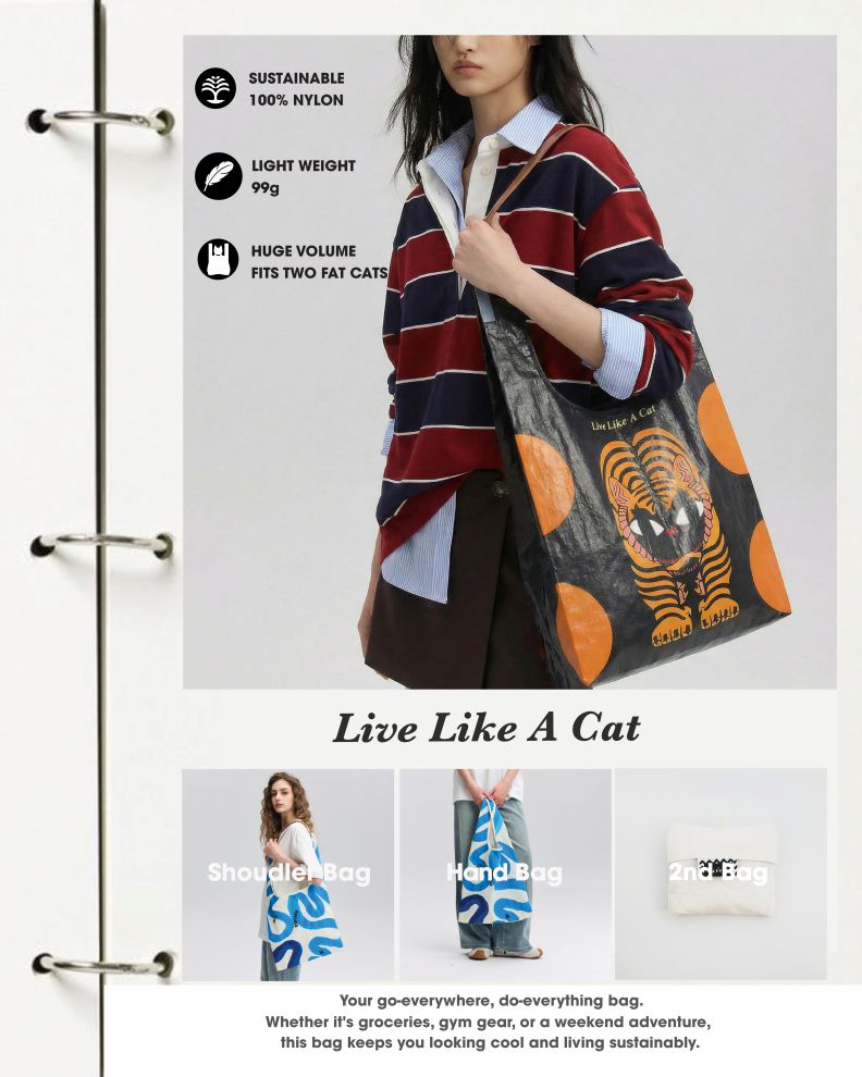 What makes it different is the story. Every design comes with its own message inspired by our “Live Like a Cat” philosophy — keep what matters close, let the noise go, and move with quiet confidence. So the bag you reach for most often can also be a small reminder of how you want to live.