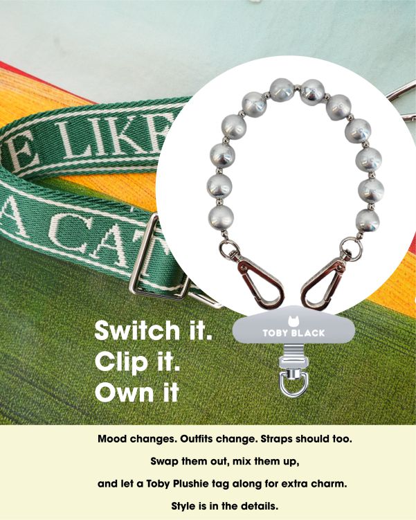 Welcome to the world of personal expression. This is where functionality meets personal flair. Our straps and charms are the finishing touches that transform your favorite pieces, turning a simple bag into a signature statement. Imagine giving your go-to Toby Bag a new personality in an instant. That is the magic of our interchangeable strap collection. It is the joy of customization, the ability to make a piece uniquely yours with a simple, satisfying click. Discover a world of textures at your fingertips. Experience the smooth texture of real leather, which narrates a tale with each use. Sink your hands into the cloud-like softness of our plush faux fur straps. Admire the elegant drape of a woven design or the delicate shimmer of a beaded strand.