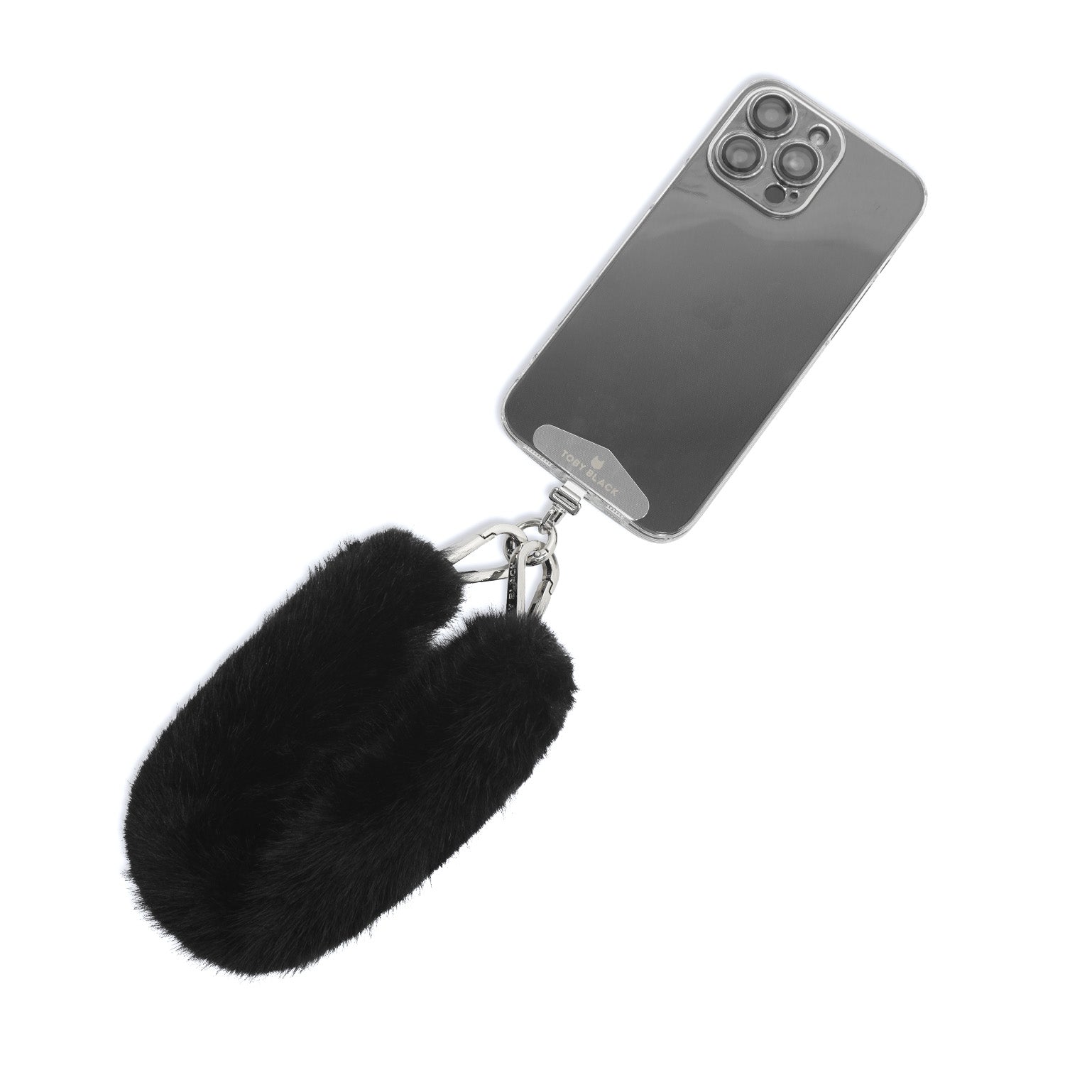 Black Fur Bag Strap/Wrist Strap with Phone Strap Adapter