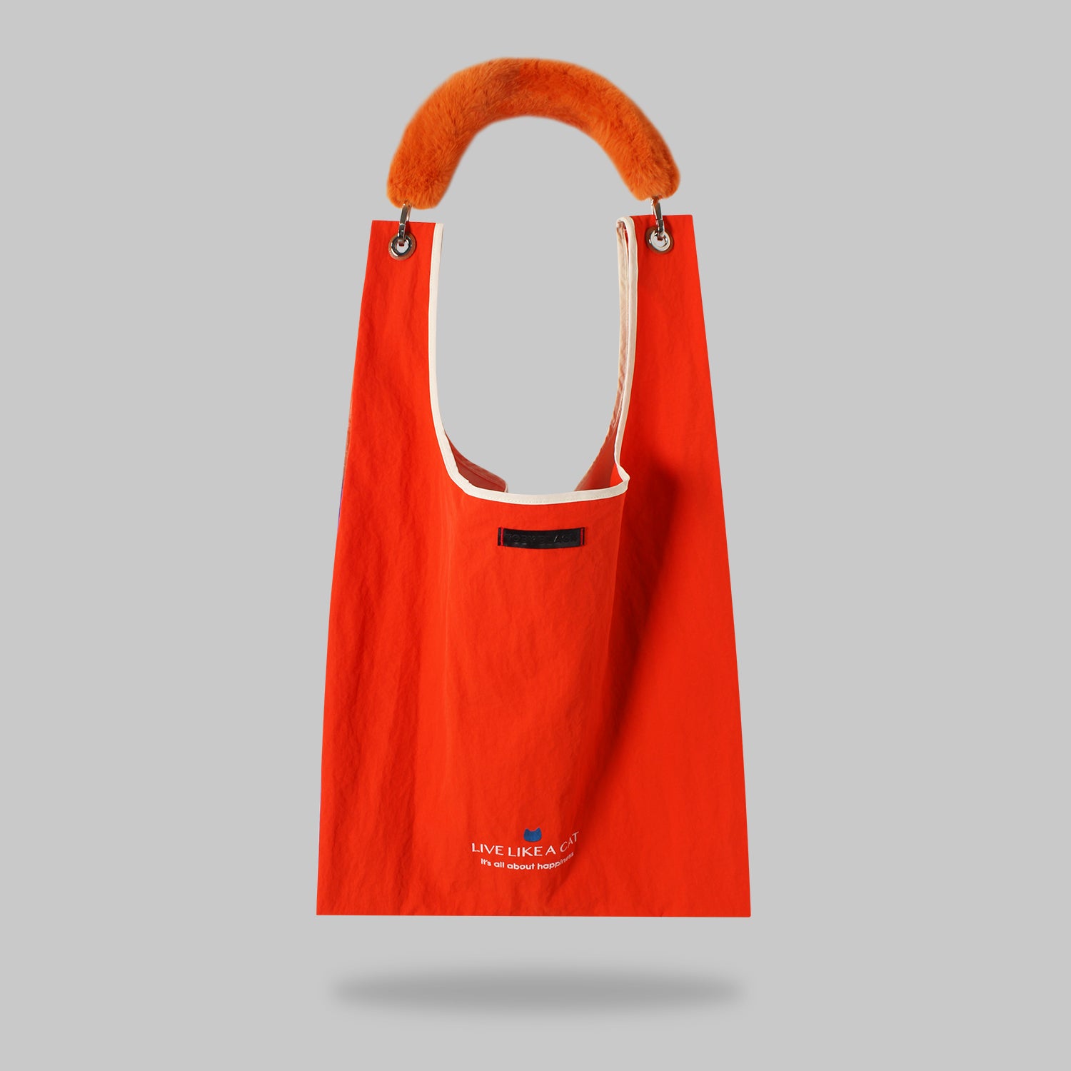 Reversible solid orange side with LIVE LIKE A CAT print