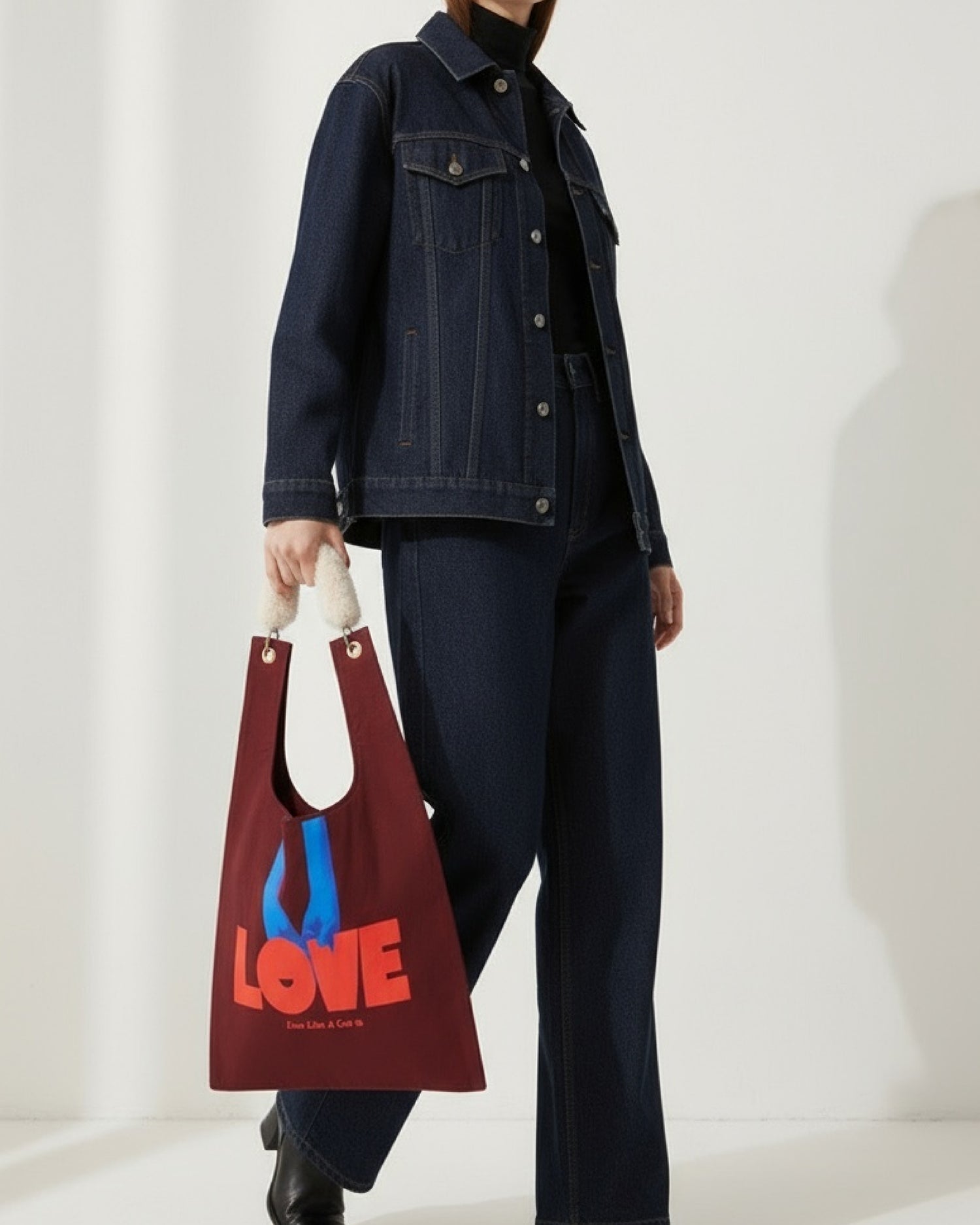 "LOVE" Toby Bag with detachable faux fur strap
