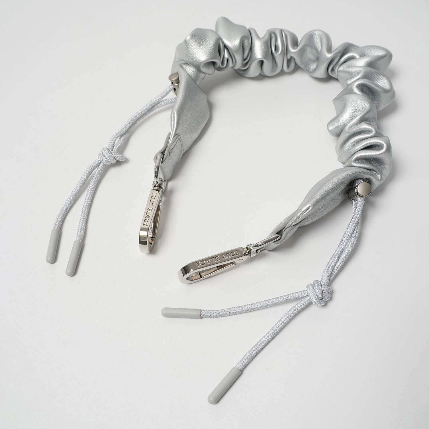 Silver Flex Leather Bag Strap/Wrist Strap with Phone Strap Adapter