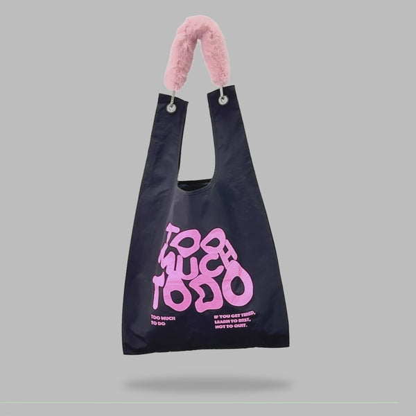 "Too Much to Do" Toby Bag with detachable faux fur strap