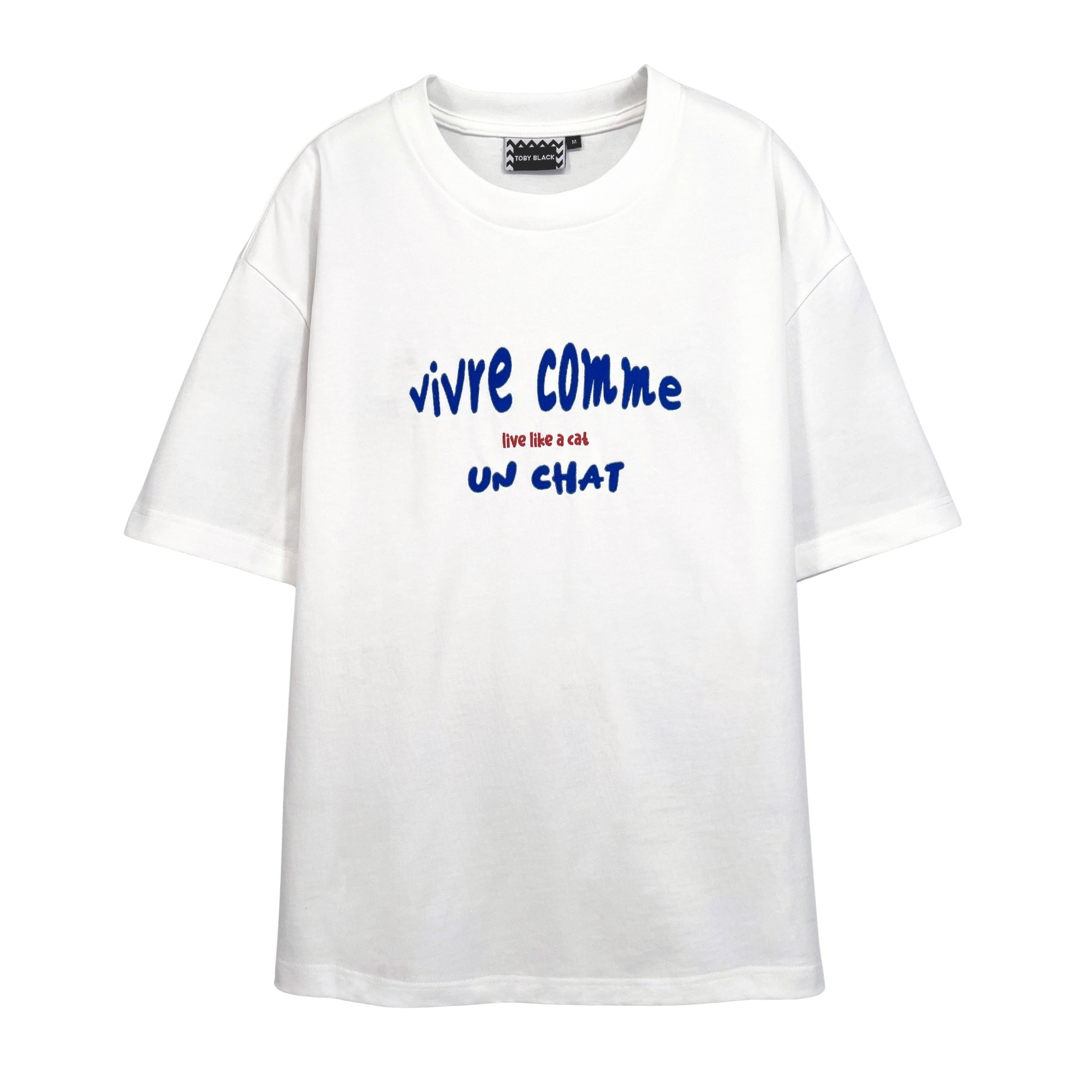 "VIVRE COMME UN CHAT" 中性寬鬆T恤